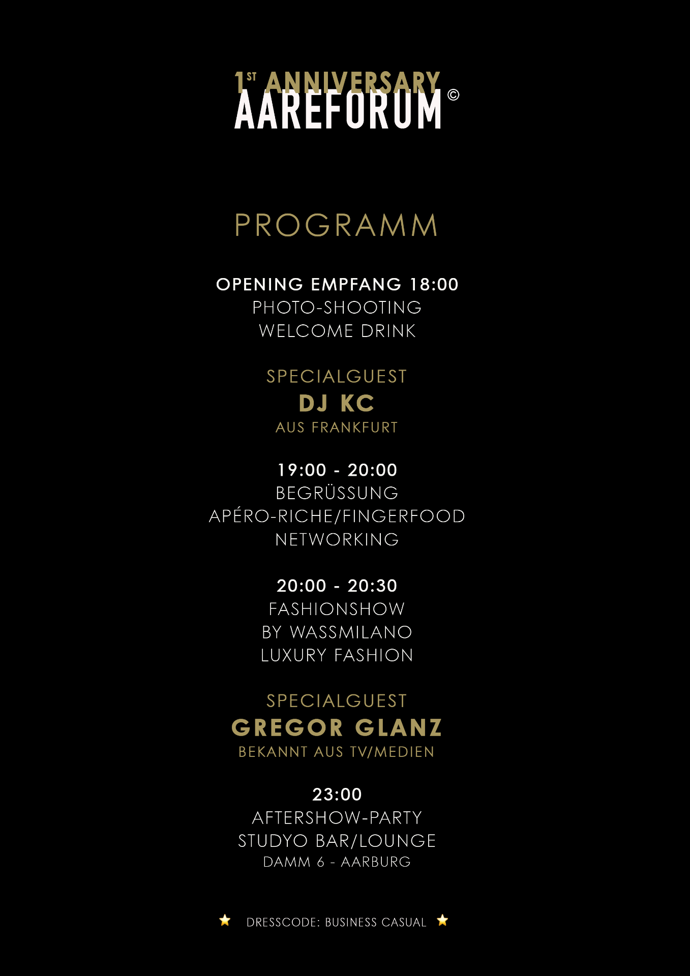 Wir feiern das 1-jährige Jubiläum des AAREFORUMS ein besonderer Abend im Zeichen von Stil, Musik und Emotion.